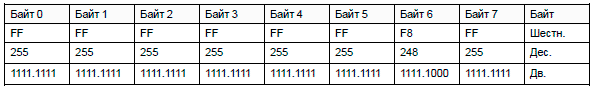 Байт 3 - здесь установлено значение 255, шестн. FF