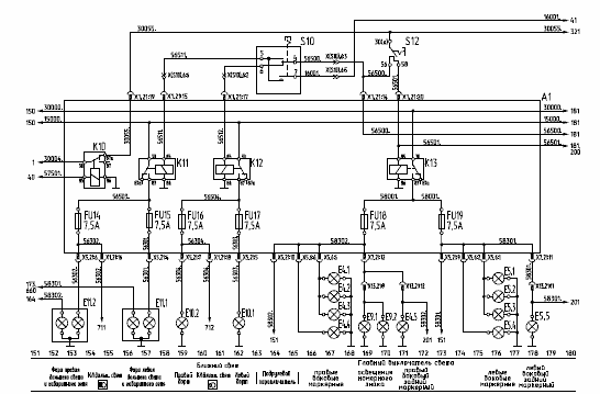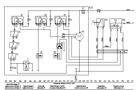 Электрооборудование собрано в соответствии с принципиальной схемой, которая приведена ниже. Принципиальные схемы постоянно дорабатываются и усовершенствуются, поэтому принципиальная электрическая схема Вашего автобуса может иметь некоторые несущественные отличия от приведенной.