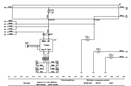 Главный жгут имеет стыковку в районе моторного отсека со жгутом по моторному отсеку (разъемы XР12.9 и ХР12.12) и жгутом задка (разъем ХР13).