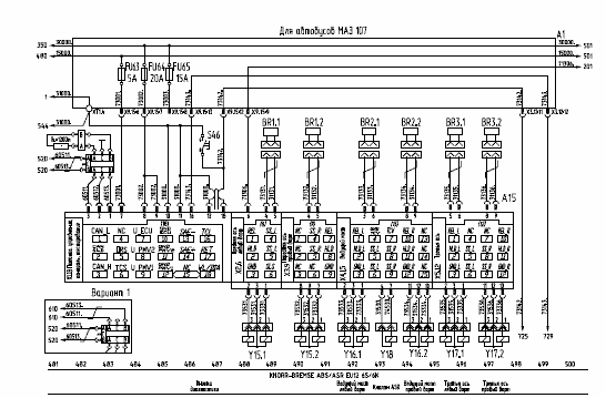 Система управления дополнительной задней осью и система блокировки колес оси автобуса МАЗ107