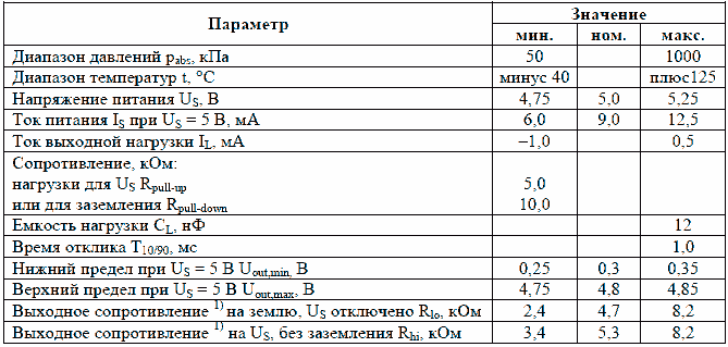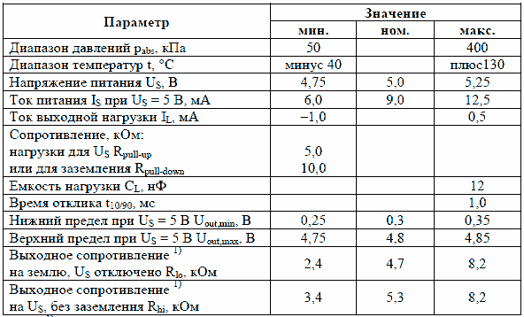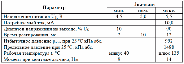 Характеристика датчика давления воздуха