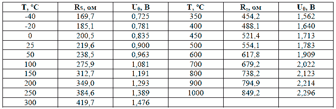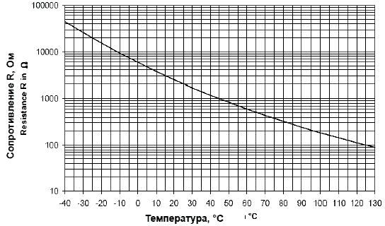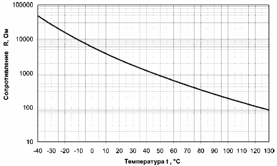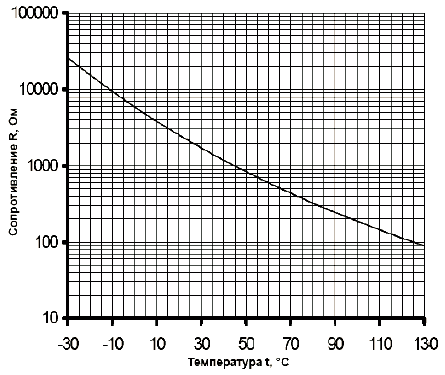 Характеристика датчика температуры R = f(T)