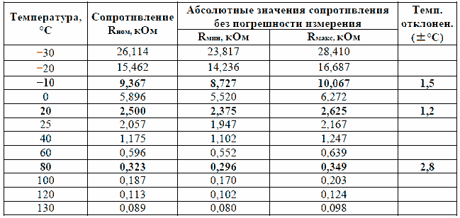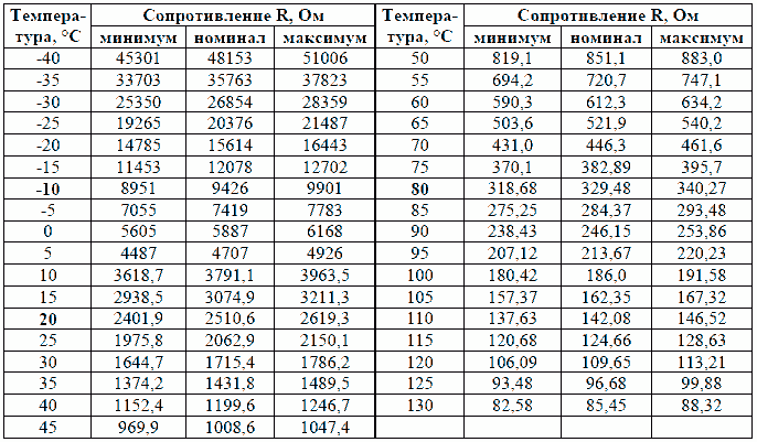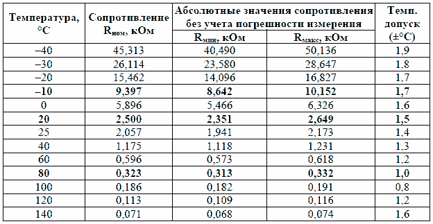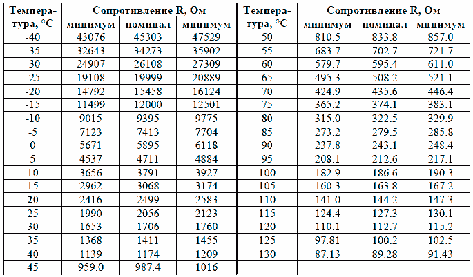 Для проверки показаний датчика измерение сопротивления проводится при температуре минус 10°C, плюс 20°C и 80°C.