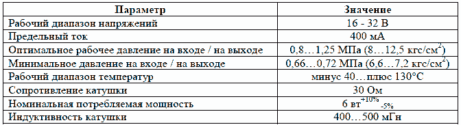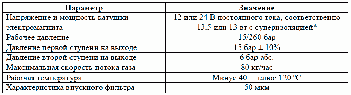 Характеристика регулятора давления