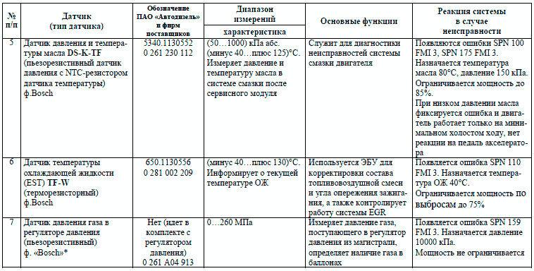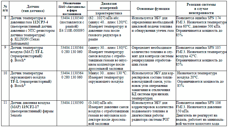 Компоненты газовых ЯМЗ-53404, ЯМЗ-53604,