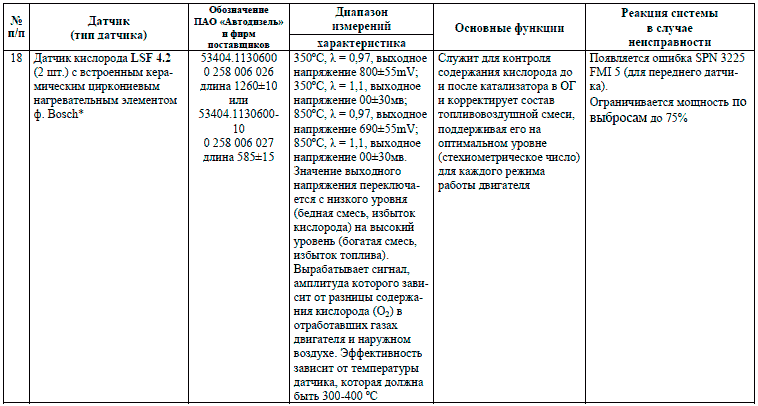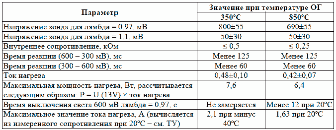 Характеристика датчика кислорода
