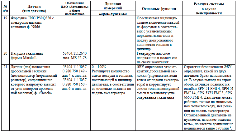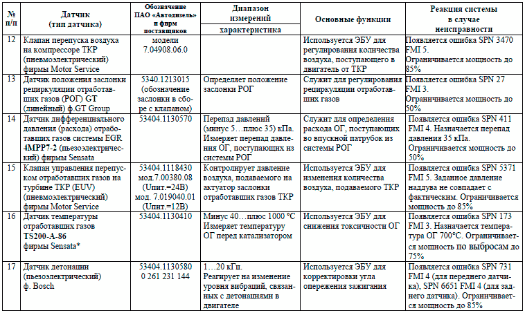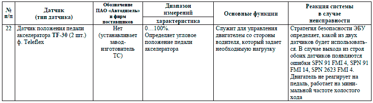 Необходимо помнить, что коды регистрируют отказы электрических контуров в совокупности, а не отдельных компонентов, входящих в их состав. Так, присутствие в памяти ЭБУ кода SPN 51, приложение Б, говорит о неисправности в цепи датчика положения дроссельной заслонки, что вовсе необязательно свидетельствует о выходе из строя самого датчика. При выявлении причин отказа особое внимание следует уделять состоянию соответствующей электропроводки и качеству ее контактных соединений. Исключить вероятность отказа рабочего элемента цепи, либо удостовериться в нем можно путем подстановки заведомо исправного компонента.