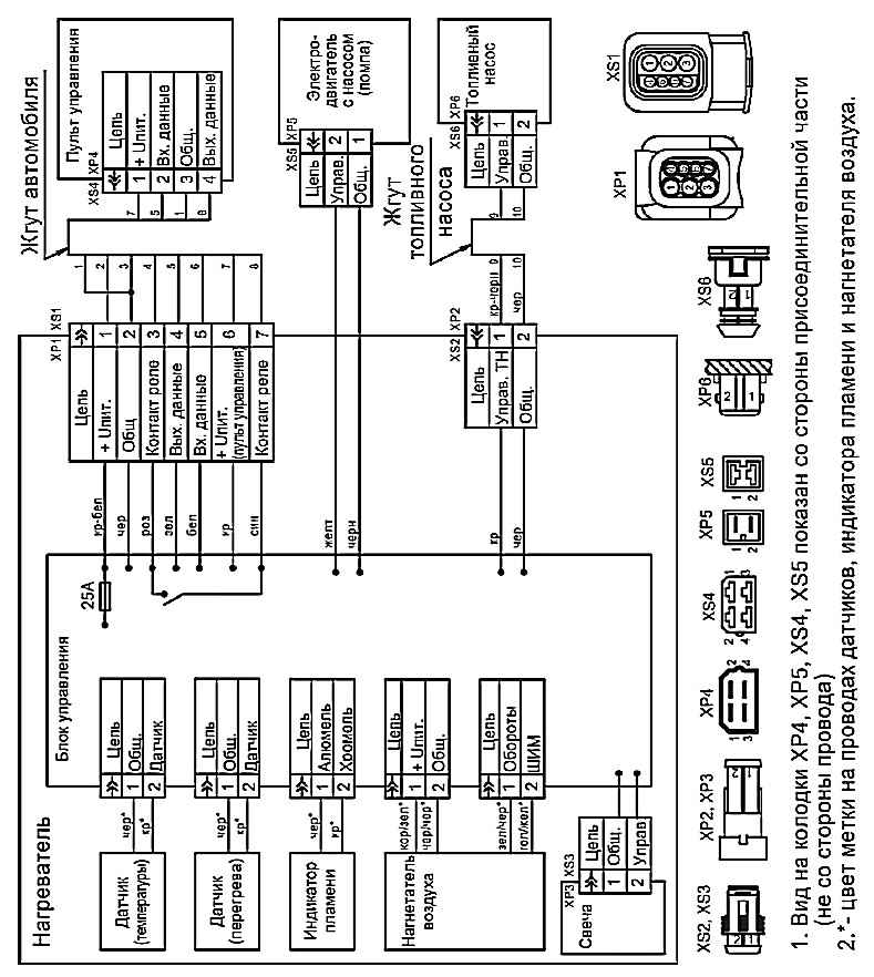2.*- цвет метки на проводах датчиков, индикатора пламени и нагнетателя воздуха.