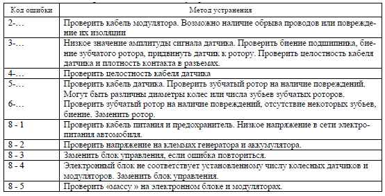Перечень кодов ошибок для Wabco и список возможных неисправностей и методы их устранения приведены ниже.