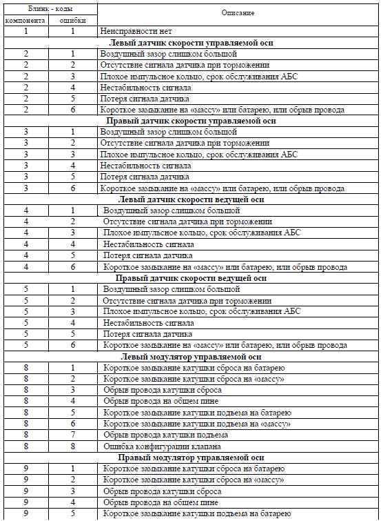 Ошибки, описываемые блинк - кодами для Wabco