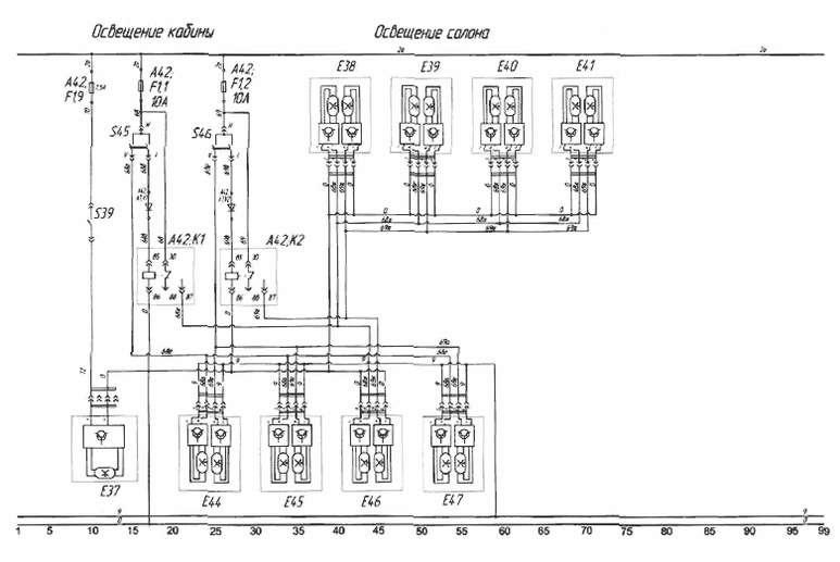Система проводки смешанная - одно- и двухпроводная. Большая часть приборов включена по однопроводной схеме, в которой отрицательные полюсы источников и потребителей энергии соединены с общим обратным проводником - металлическим кузовом автобуса (''массой").