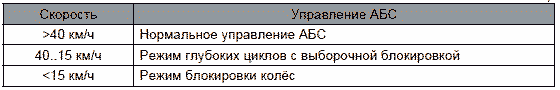 Для того чтобы полностью использовать усилие по сцеплению при торможении под контролем АБС, “бортовой” режим решает, какой из режимов торможения применить.