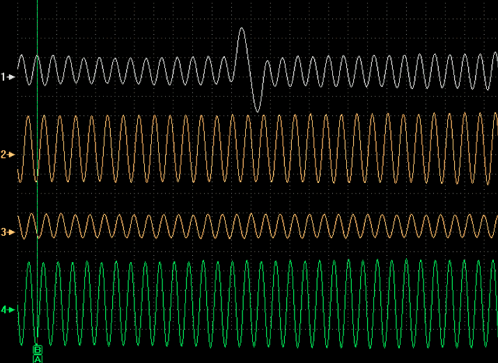 3 Осциллограмма напряжения выходного сигнала неправильно установленного исправного датчика частоты вращения (в данном случае заднего левого колеса).