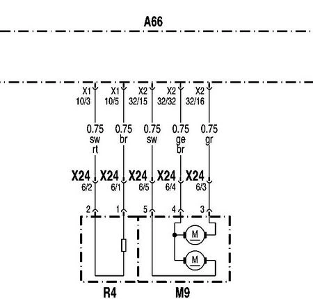 М9, R4: Электромотор регулировки положения зеркала и подогрев зеркала