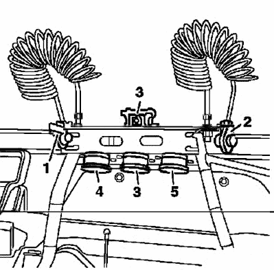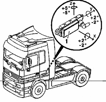 - 1: Место установки выключателя 'Отключение ABS прицепа' и 'Увеличение порогового значения ASR'