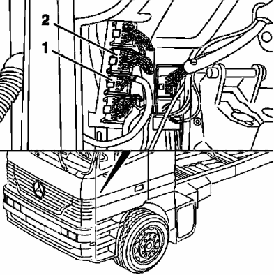 - 2: Х124.1 Штекерное соединение 'Крыша' со стороны водителя