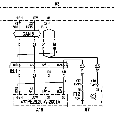 - Х3.1: Штекерное соединение 'Кабина водителя-шасси'