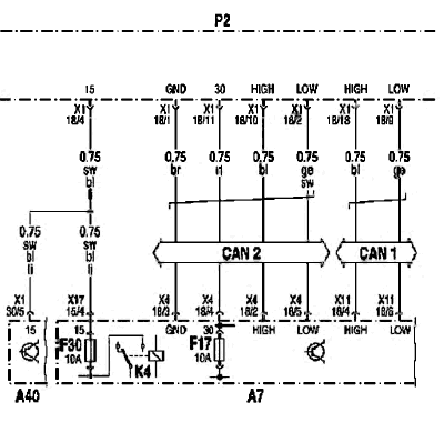 - Х2.1: Штекерное соединение Х2.1 на плате штекеров 'Кабина водителя-шасси'