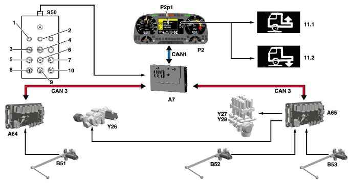 осей спереди и сзади и системы облегчения трогания с места.