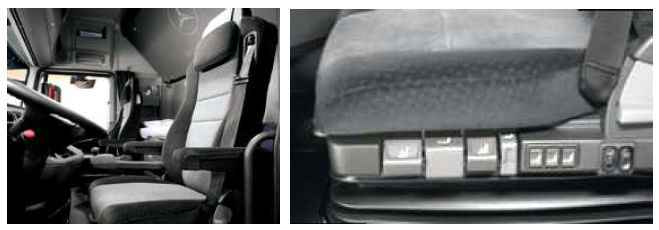 Комфортные сиденья водителя и пассажира снабжены пневматической демпфирующей подвеской. Сиденье водителя (рисунок 1.2) для обеспечения удобного рабочего положения имеет регулирование высоты относительно пола кабины и продольное регулирование с функцией памяти, регулирование угла наклона спинки (плавное) и глубины посадки подушки, а также регулируемый по высоте ремень безопасности. Сиденье пассажира имеет откидную подушку и наклоняемую спинку.