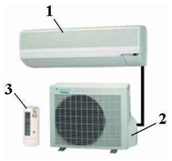 1 – внутренний блок; 2 – наружный блок; 3 – пульт дистанционного управления