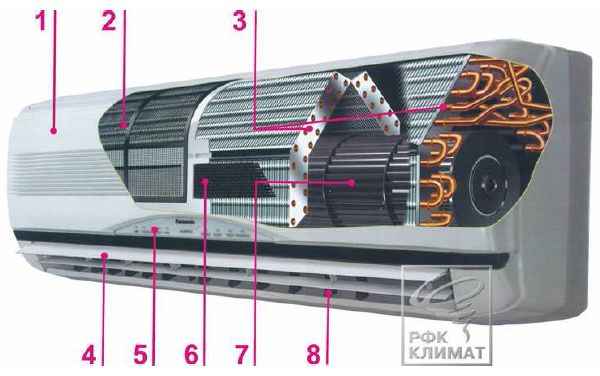 жалюзи; 5 – индикаторная панель; 6 – фильтр тонкой очистки; 7 – вентилятор;