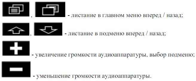 - „Звук“ – для регулировки громкости в динамиках, для управления аудиоаппаратурой.