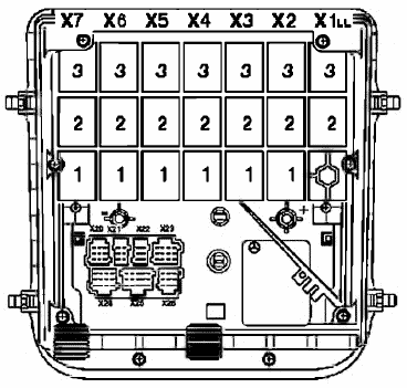 - Крышка модулятора тормозного усилия с нумерациями штекеров