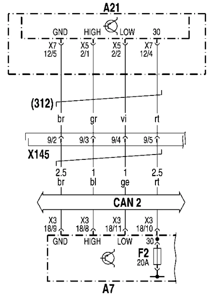 - Х145: Штекерное соединение 'Дополнительный отопитель'
