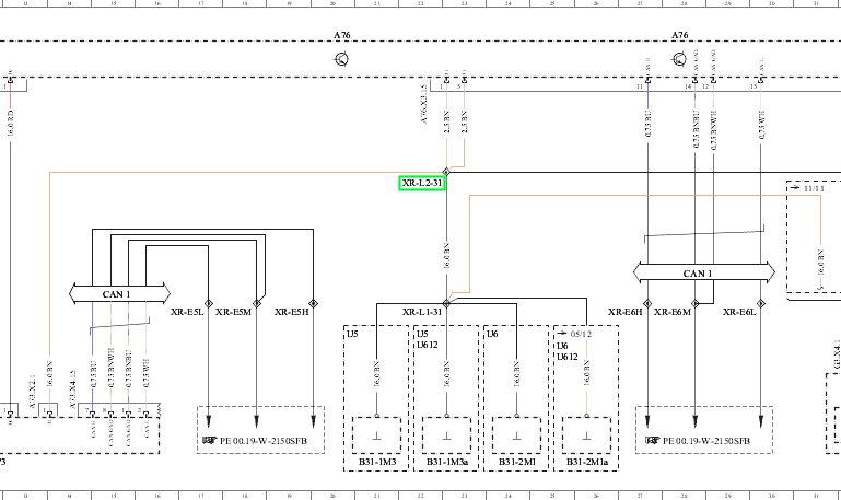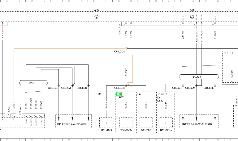 XR-E5L (место спайки проводов внешнего оборудования 5, CAN-L)