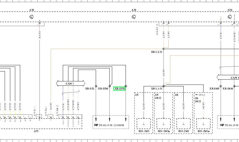 А73.Х4.12/7: XR-E5H (место спайки проводов внешнего оборудования 5, CAN-H)