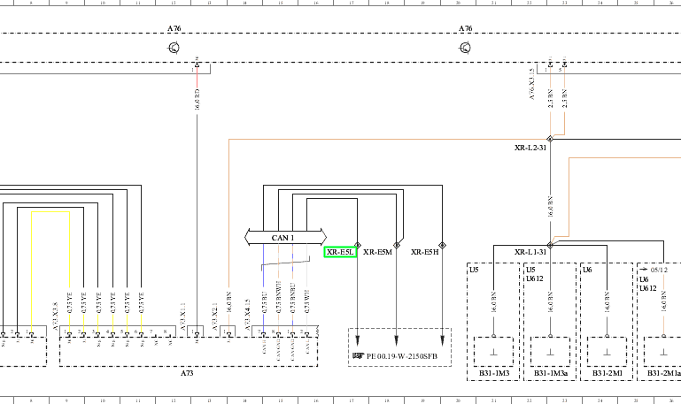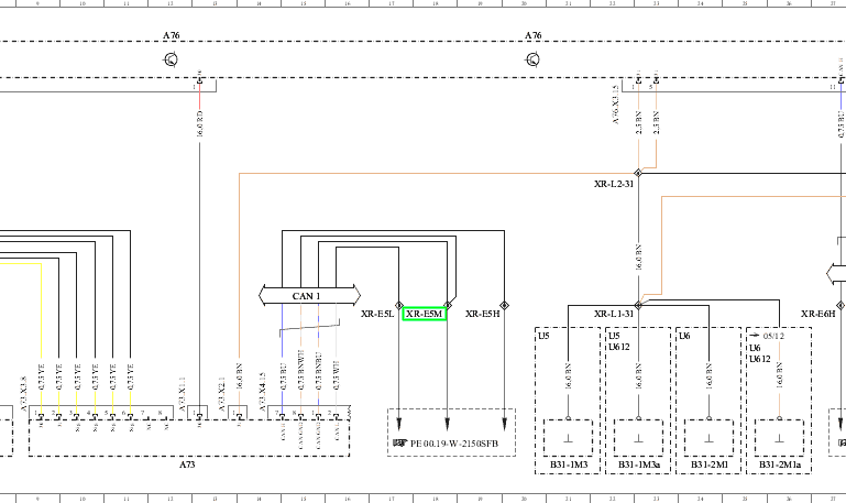 А73.Х4.12/2: XR-E5L (место спайки проводов внешнего оборудования 5, CAN-L)