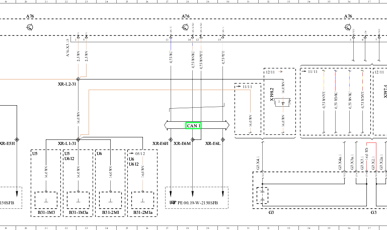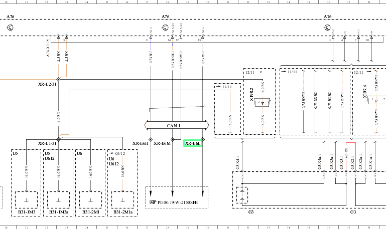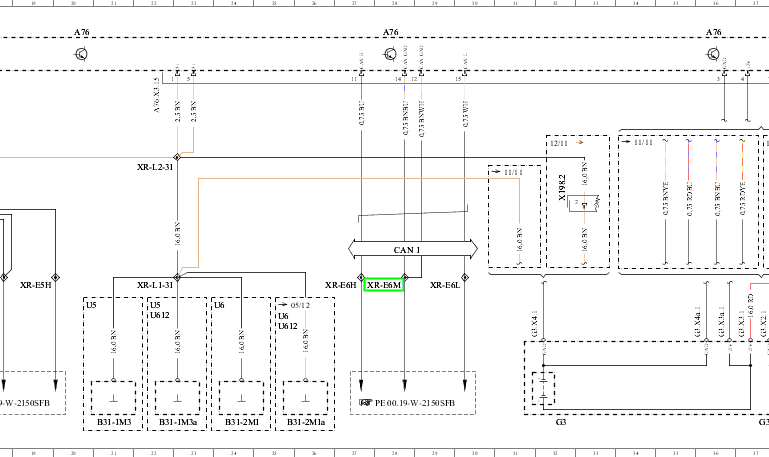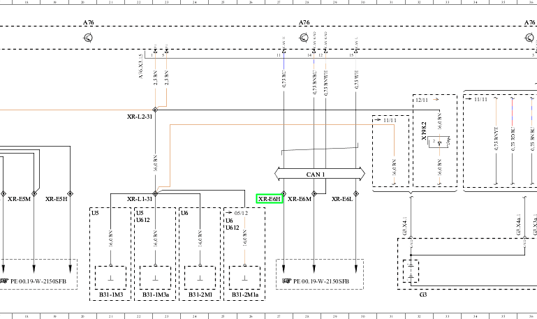 XR-E6H (место спайки проводов внешнего оборудования 6, CAN-H)