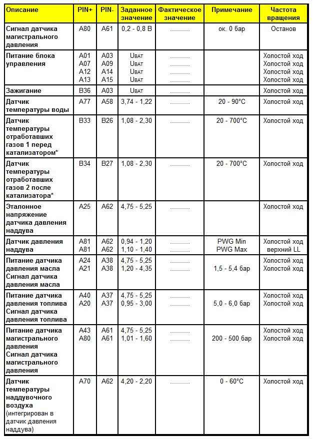 Критерий неисправности: Сигнал слишком высокий, слишком низкий или неидентифицируемый. Короткое замыкание на массу или +Ubat, разрыв проводников
