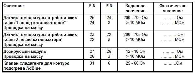 Реакция системы: При чрезмерно высокой температуре система отключается до следующего запуска (кл. 15 вкл.) При утечке AdBlue система отключается до тех пор, пока накопитель неисправностей не будет стерт!