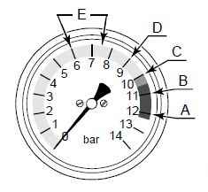 B: Давление воздуха в режиме нагрева, 11,0-12,3 бар.