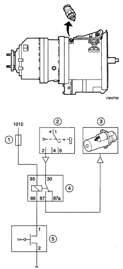 При выключении зажигания проверяется, находится ли коробка передач механически в нейтральном положении и включено ли сцепление. Если это не так, коробка передач принудительно переводится модулятором в нейтральное положение. Независимо от положения узла управления, через несколько секунд подача напряжения прекращается (1000), посредством внутреннего автоматического реле отключения в модуляторе.
