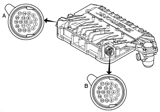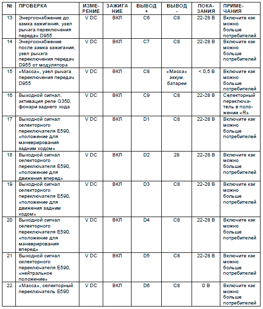 1. Местоположение неисправности можно легко определить посредством осуществления транзитного соединения и/или проведения измерений на проходном разъеме монтажного блока панели приборов, при отсоединенном разъеме модулятора коробки передач со стороны «TRANSMISSION».