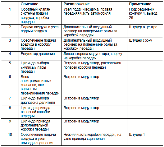 - Расположение пневматических узлов