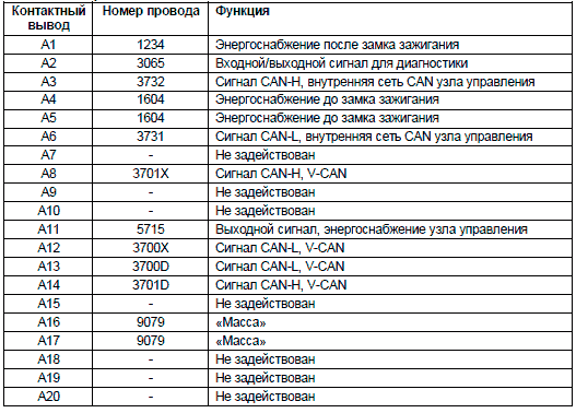 КОНТАКТНЫЕ ВЫВОДЫ НА УЗЛЕ УПРАВЛЕНИЯ