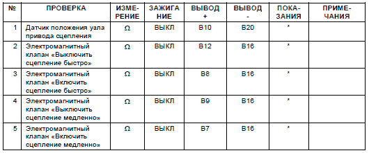 - Проверочная таблица для измерения сопротивления и контроля срабатывания узлов