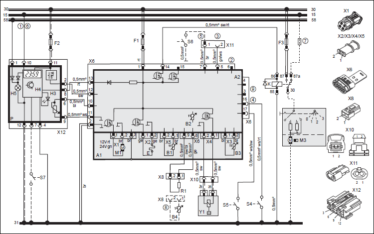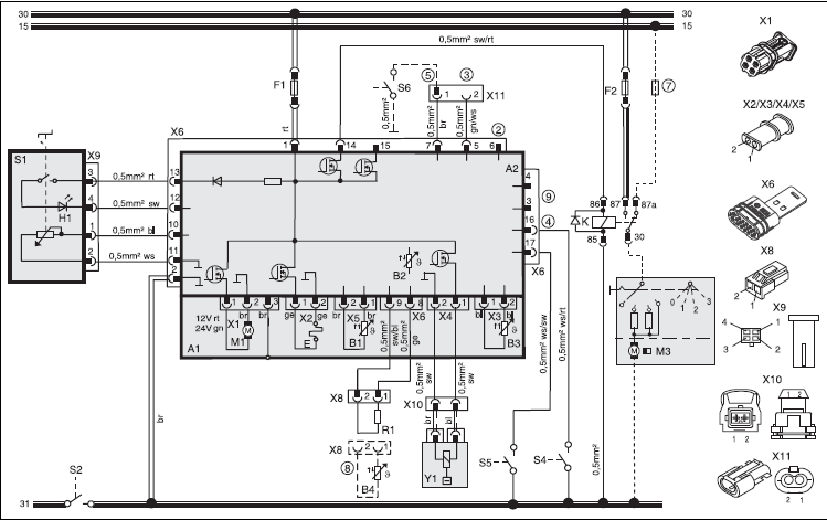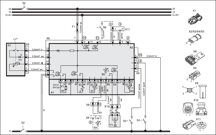 Вход реле (в случае его наличия) разъединителя (S2) должен быть связан с управляющим устройством (штырек 15/штекер X6).