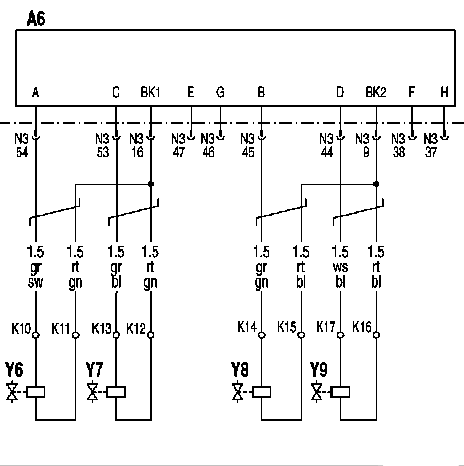 - Y6...Y9: Электромагнитные клапаны ТНВД цилиндров 1...4 (на двигателе R4)