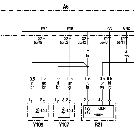 - Y107: Электромагнитный клапан 'Подогрев бака AdBlue'