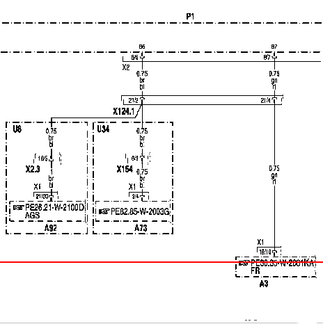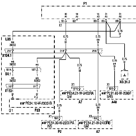 - Х124.1: Штекерное соединение 'Крыша' со стороны водителя