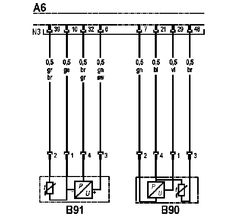 - Y6...Y8: Электромагнитные клапаны ТНВД цилиндров 1...3 (на двигателе R6)