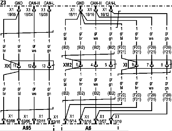 b) Штекерное соединение XI (16-контактное):