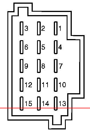 - Контакт 15: правый датчик перемещения ведущего моста (+)
