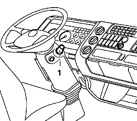 - 1: Рычаг задействования 'Управление двигателем/тормозом-замедлителем' (S2)