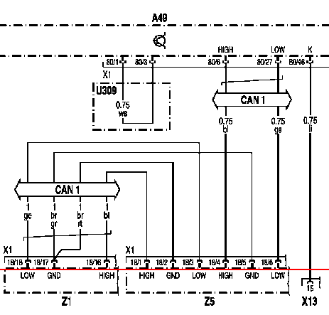 - Z5 Точка звезды CAN на задней стенке кабины водителя